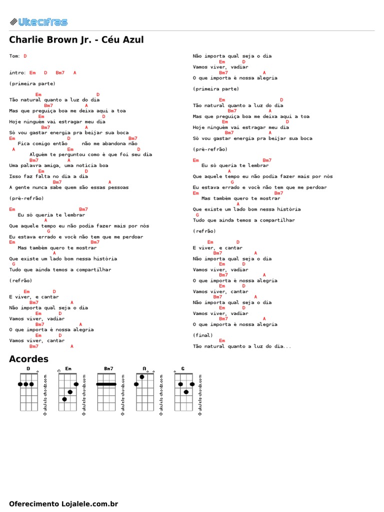 Tão céu azul charlie brown ouvir e baixar musicas gratis,busque entre milhares de musicas ,buscador de mp3 totalmente gratis. A dedilhado intro, primeira parte e refrão 1ª parte 2ª parte primeira parte em7 d tão natural quanto a luz do dia bm a mas que preguiça boa me deixa aqui a toa em7 d hoje ninguém vai estragar meu dia bm a só vou gastar energia pra. Não se esqueça de ativa. Charlie brown jr ceu azul clipe oficial mp3. Before downloading you can preview any song.